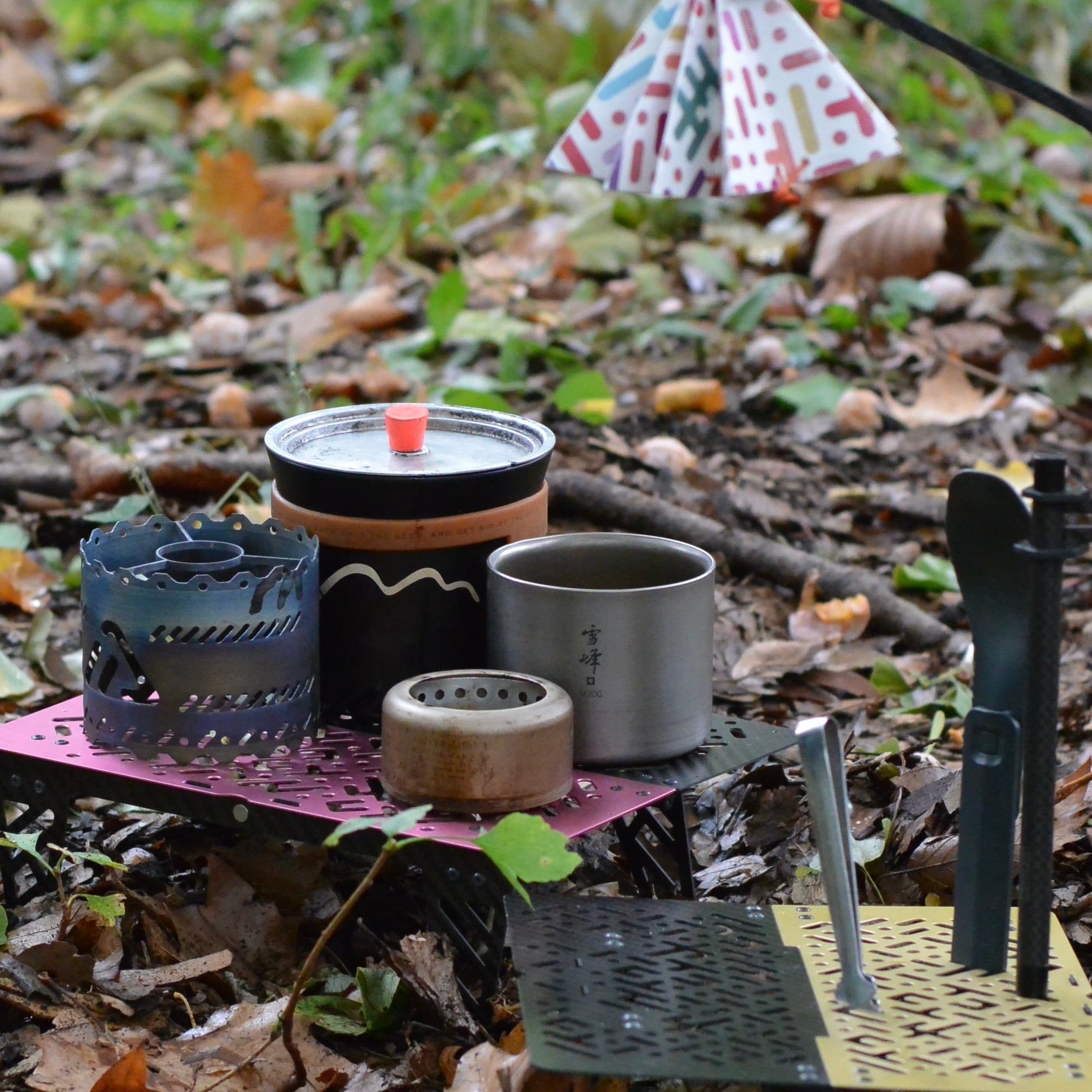 ※ヒンジパーツとカーボンパーツはアルミ天板より耐熱性が大幅に劣ります。炎が暴発して直接当たってしまったり、燃料がこぼれて引火してしまうと、溶けてしまう場合があります。火が直接ヒンジパーツやカーバンパーツに当たらないように、十分ご注意ください。