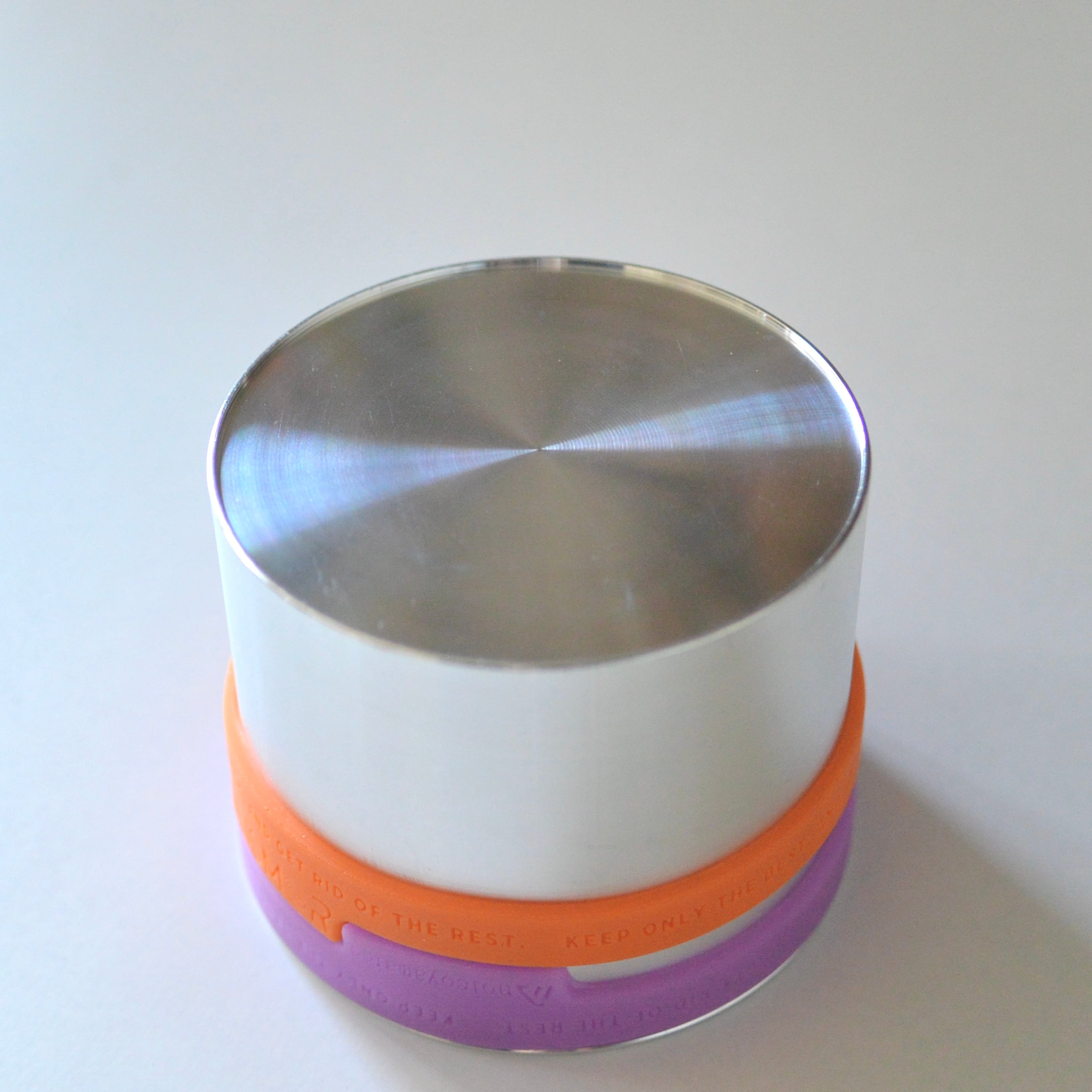 ※アルミマグのため、熱湯を注ぐと大変熱くなり、すぐにそのまま飲むと口や指をヤケドしてしまうおそれがあります。付属のシリコンバンドを2本装着し、お湯を十分に冷ましてからご使用ください。